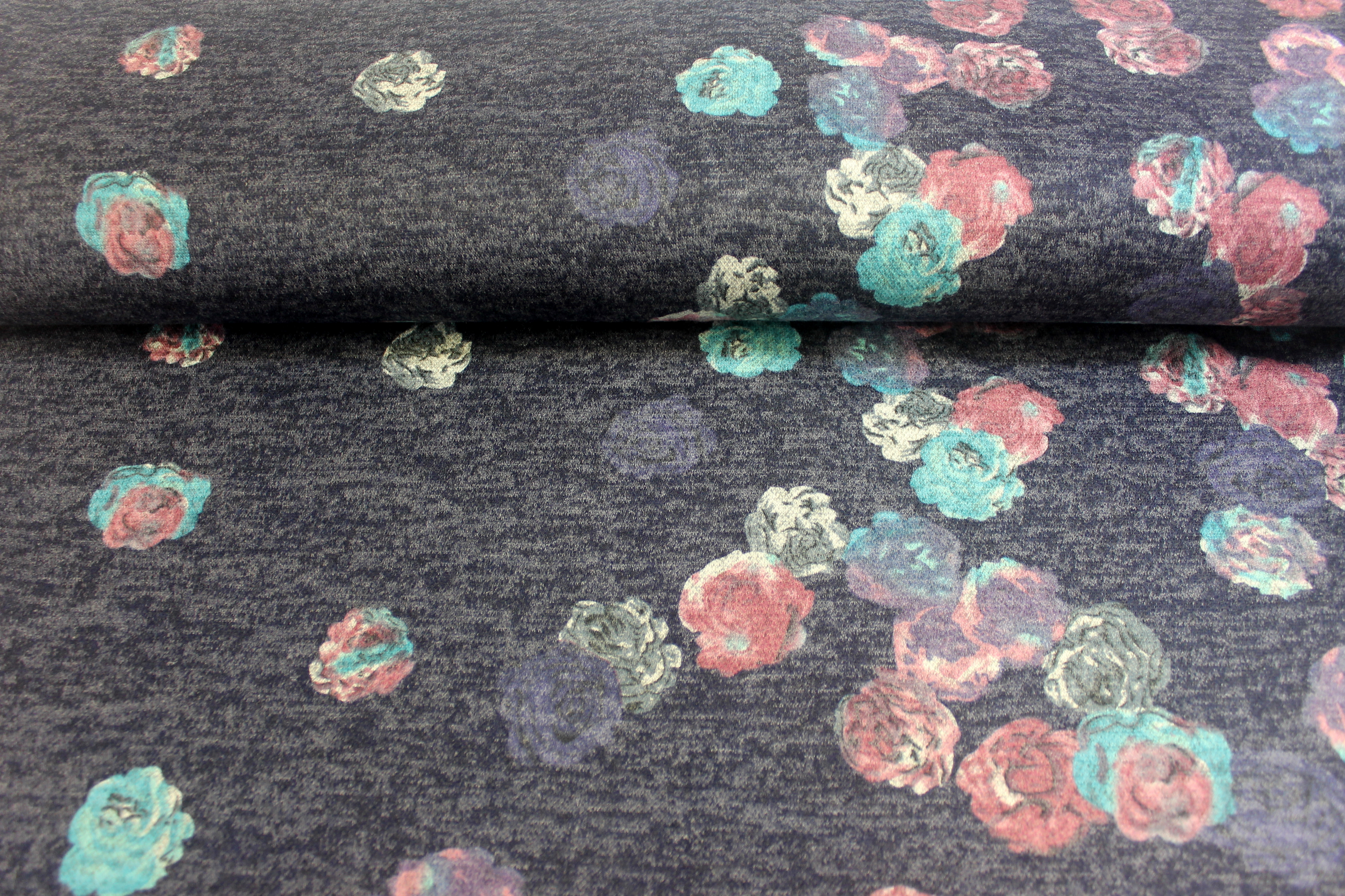 Produktinformationen "Ajour - Jersey | Strick Druck | Blumenregen | marine melange"
